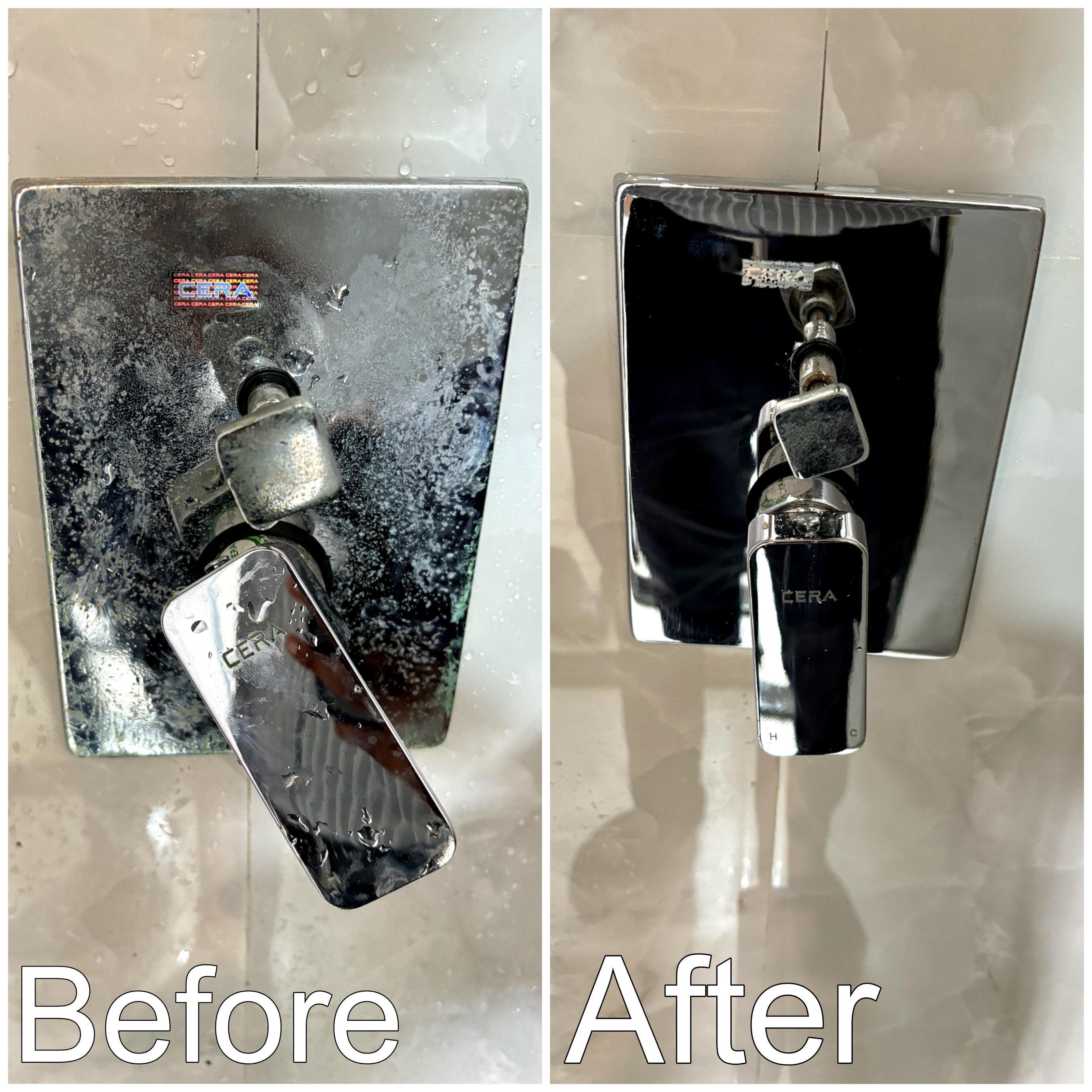 I was tired of white hard water marks on my shower and basin taps. This cleaner removed them⭐⭐⭐⭐⭐