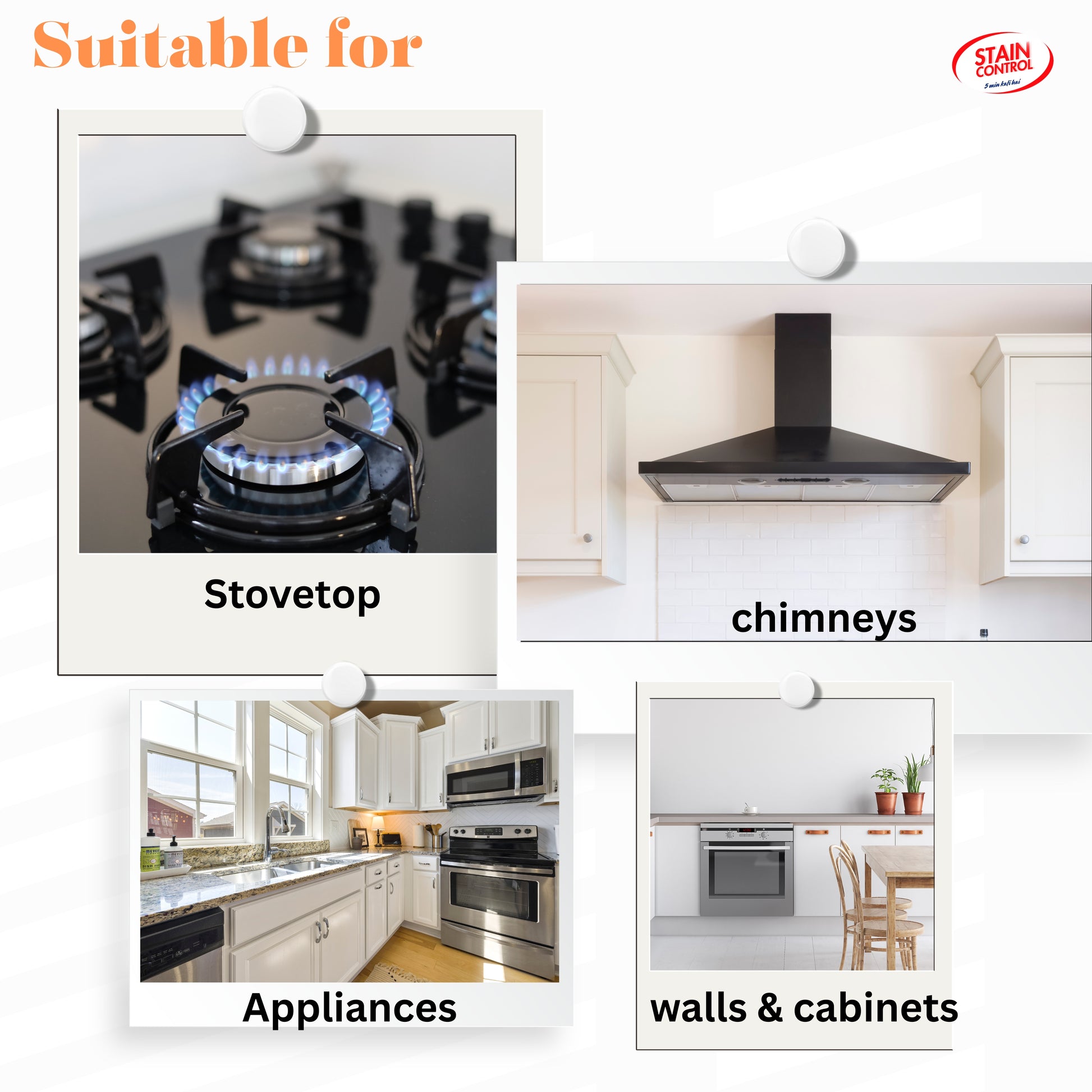 - Powerful Oil & Grease Remover – Effectively dissolves stubborn oil, grease, and food stains from kitchen surfaces.